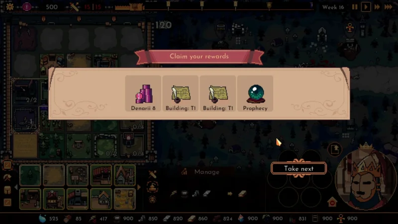 Собирайте ключевые ресурсы — еду, древесину и железо — для развития королевства. Стройте здания, укрепления и сражайтесь с волнами нападающих, которые появляются в самые неожиданные моменты. Игра идет в реальном времени, но с паузой, что дает возможность тщательно продумать каждое решение. Каждый забег уникален — случайные генерации карт подкидывают новые испытания, заставляя адаптироваться и искать новые тактики.
