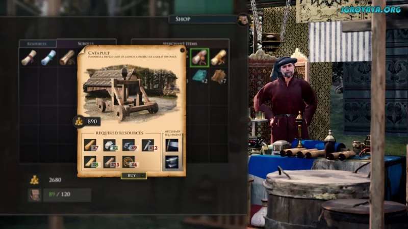 Геймплей богат и многогранен: здесь важно не только создавать катапульты и требушеты, но и исследовать полузакрытый мир в поисках ценных ресурсов. Заключайте сделки с кузнецами, добывайте лучшую древесину и металл, постоянно улучшая свои изобретения. Сначала в вашем арсенале будут только базовые механизмы, но с опытом вы соберёте целую коллекцию из различных осадных орудий, каждое из которых уникально и смертоносно.