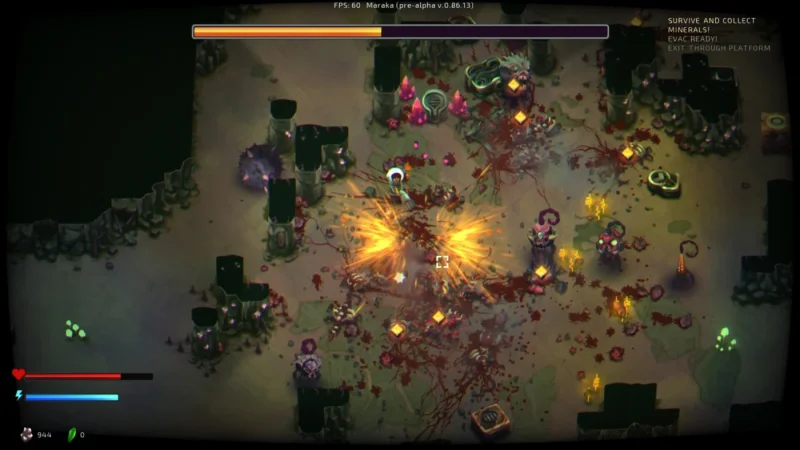Вам придется использовать магнитные силы, чтобы перемещать объекты и противников, превращая их в орудия для собственной защиты. Сражения здесь — не просто «стреляй и беги», а настоящая физическая головоломка, где важно применять силу и ум. Среди опасностей — катящиеся шипастые валуны, взрывающиеся мины и смертоносные металлические осколки. Пещеры полностью разрушаемы, что добавляет стратегической вариативности. В Maraka постоянно нужно быть начеку и использовать окружение с умом.