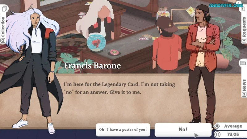 Кроме бизнеса, мир Kardboard Kings полон живых историй и неожиданных событий. Посетители поделятся интересными рассказами, а вам придется принимать важные решения, влияющие на судьбу магазина. Это не просто симулятор, а целое приключение в мире коллекционирования и стратегии.