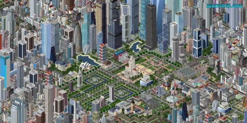 - Разнообразие строений от жилых домов до чудес света