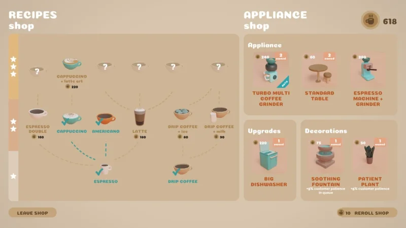 Постройте собственную сеть кофеен, доказывая, что ваш напиток заслуживает внимания настоящих гурманов. Благодаря разнообразию ситуаций и случайно генерируемым заказам, в каждом забеге вас ждут новые вызовы и неожиданные встречи. Экспериментируйте с рецептами, комбинируйте ингредиенты и ежедневно обновляйте меню, чтобы удивлять посетителей.