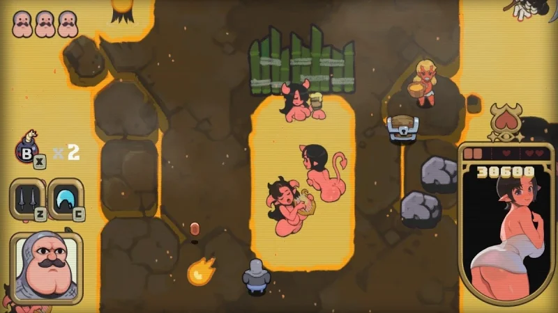 Здесь вам предстоит бороться с ордами монстров, используя лук и копья, подбирая апгрейды и постоянно улучшая своё оружие. Прыжки, уклонения и мощные атаки — всё это напоминает классические платформеры вроде Ghosts’n Goblins, но с пикантной пиксельной изюминкой. Чем выше ваш счёт, тем смелее и откровеннее становятся награды — пленницы постепенно раздеваются, подогревая интерес к игре.