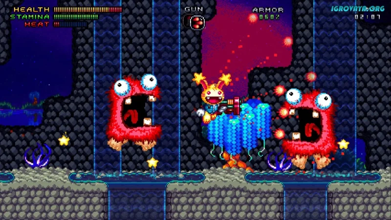 Погрузитесь в яркий и динамичный мир Spectacular Sparky, где каждый уровень – это новое межгалактическое приключение с безумным охотником за головами по имени Спарки. Эта игра сочетает в себе классическую ретро-графику и современный игровой драйв, предлагая множество способов сражаться и побеждать.