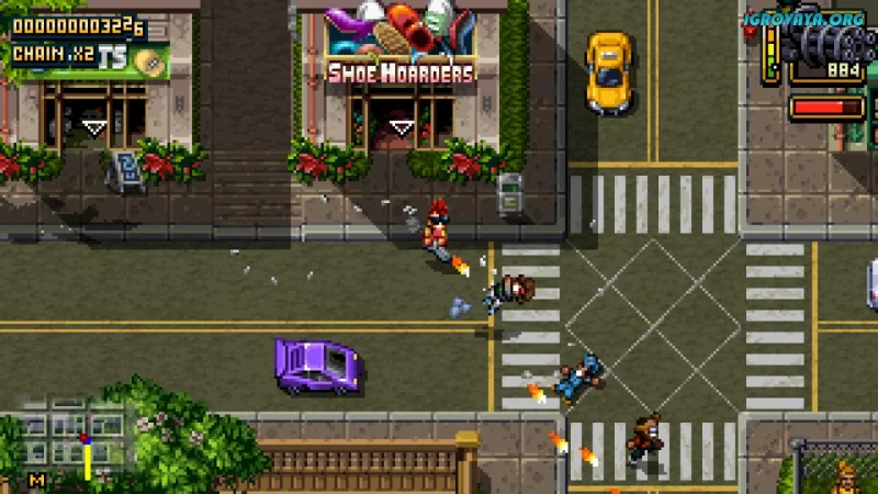 Это продолжение популярной Retro City Rampage переносит нас на тридцать лет вперед — главный герой снова в деле. Теперь он шагает по улицам города, захватывая магазины, уничтожая конкурентов и сшибая с ног новые банды. Его цель — восстановить влияние и стать абсолютным хозяином местного криминального мира.