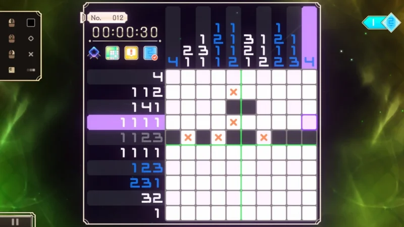 Если вы знакомы с японскими нонограммами, то сразу оцените принцип Logiart Grimoire. Перед вами поле от 5×5 до 40×30 клеток, вокруг которого расположены числовые подсказки. Они подсказывают, сколько и какие клетки нужно закрасить, а иногда — с каким промежутком. Чтобы не запутаться, вы можете помечать крестики области, где цвета точно не будет. В результате сложной работы появляется уникальное изображение, качество которого зависит от выбранного размера поля. Чем больше поле — тем выше сложность, так что выбирайте с умом.