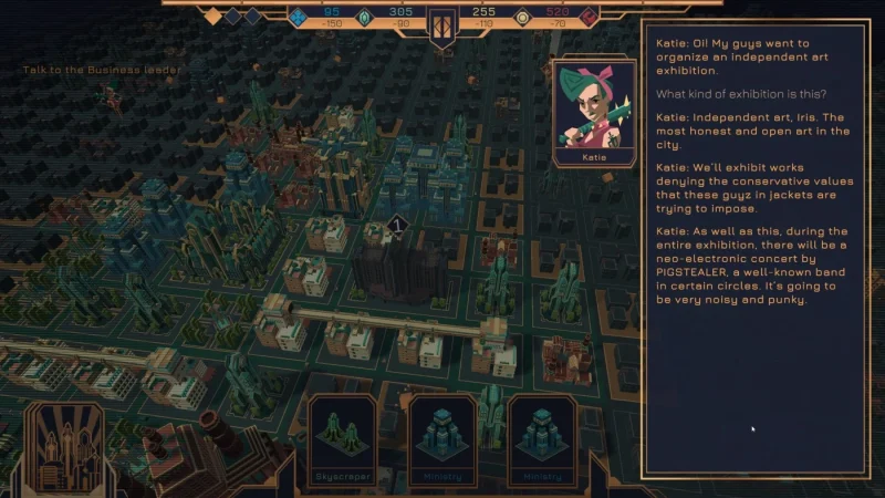 В мире после социальных кризисов и экономического хаоса остался один уцелевший мегаполис. Здесь вы возьмёте на себя роль искусственного интеллекта Айрис — уникального алгоритма, созданного для управления городом и поддержания хрупкого баланса между разными слоями населения. Ваша задача — построить идеальный город, который станет настоящим оазисом в пустыне хаоса. Но не всё так просто: путь к утопии усеян испытаниями и непростыми решениями.