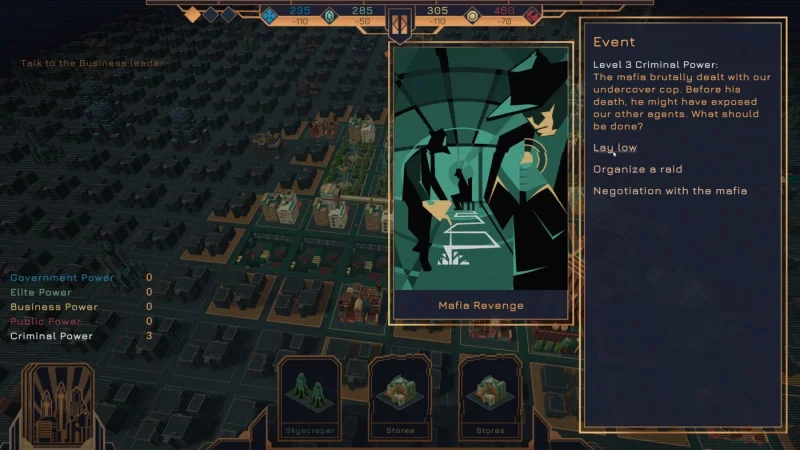 Играть за ИИ — значит постоянно отвечать на вызовы: пожары, всплески преступности, политические интриги и борьба четырёх могущественных фракций — аристократов, капиталистов, политиков и простого народа. Каждый из них стремится ослабить ваш контроль и нарушить порядок, поэтому кибербезопасность становится приоритетом. Игра благодаря процедурной генерации событий и карт всегда остается непредсказуемой, заставляя принимать молниеносные решения. Это как закатать рукава и вступить в шахматную партию с невидимым соперником — победа даётся лишь тем, кто умеет думать наперёд.