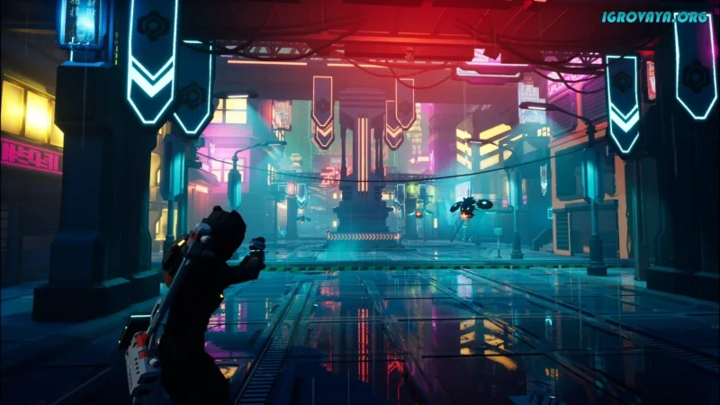 - Яркий киберпанковский стиль и впечатляющая графика;