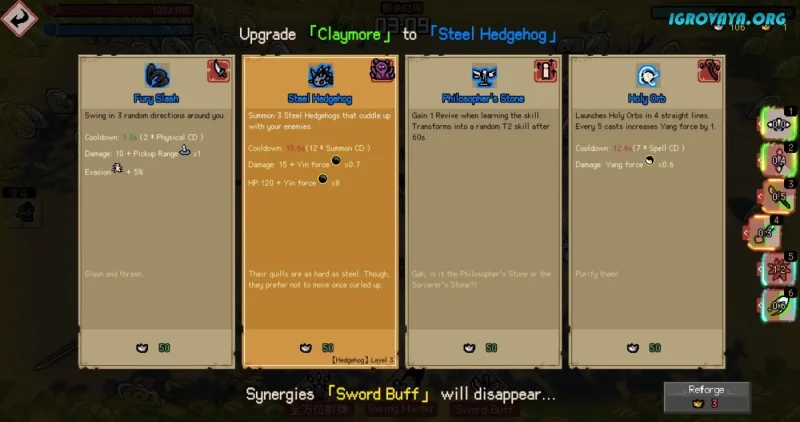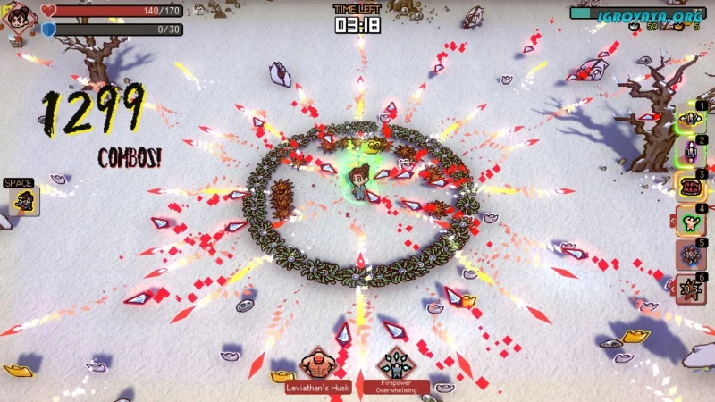 Боевая механика проста, но затягивает: уничтожайте растущие орды врагов, собирайте очки опыта и совершенствуйте оружие. Решайте, какие улучшения выбрать, ведь слоты ограничены, и от этого зависит ваша дальнейшая тактика. Это добавляет игре стратегической глубины и заставляет думать на ходу.