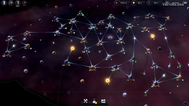 - Игра в космическом масштабе, с десятками разнородных планет;