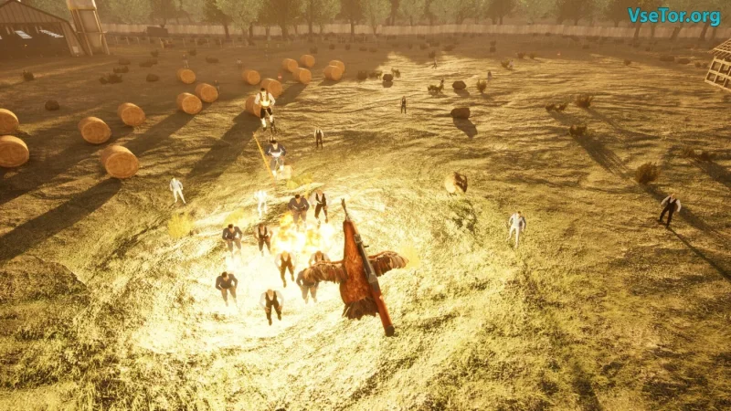 - Яркий и динамичный геймплей с управлением курицей с уникальным вооружением;