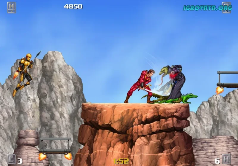 В Shadow Gangs вас ждут не просто бег и прыжки слева направо. Ниндзя Дэн владеет не только мечом, но и огнестрельным оружием, что делает каждую схватку яркой и непредсказуемой. На пути к спасению семьи предстоят жестокие перестрелки, эффектные приемы и сражения с запоминающимися боссами в роботизированных костюмах. В некоторых уровнях вам придется переключиться на режим от первого лица, чтобы метко стрелять по врагам, добавляя разнообразие и драйв.