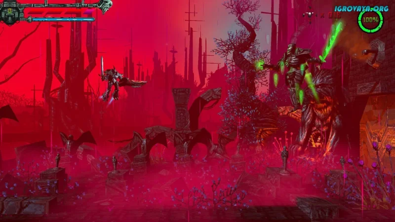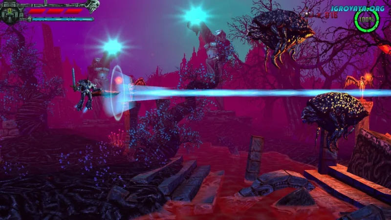 Valfaris: Mecha Therion — это захватывающее возвращение динамичного псевдотрёхмерного шутера с насыщенным научно-фантастическим антуражем. Главный герой Терион продолжает свой путь после катастрофы на родной планете Вальфарис, готовясь отомстить Лорду Вроллу, причастному к разрушению его мира. Это путешествие полно опасностей и неожиданных встреч, поэтому тренируйтесь на мелких врагах и оттачивайте навыки перед масштабными сражениями с грозными боссами.