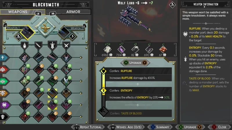 Собирайте добычу после каждой жестокой битвы: зубы могущественных тварей становятся рукоятями, а драконья чешуя превращается в легендарные доспехи. В кузнице можно улучшать экипировку, а подношения статуе Иопа приносят ценные временные усиления — от пылающей ауры до стремительного восстановления энергии.