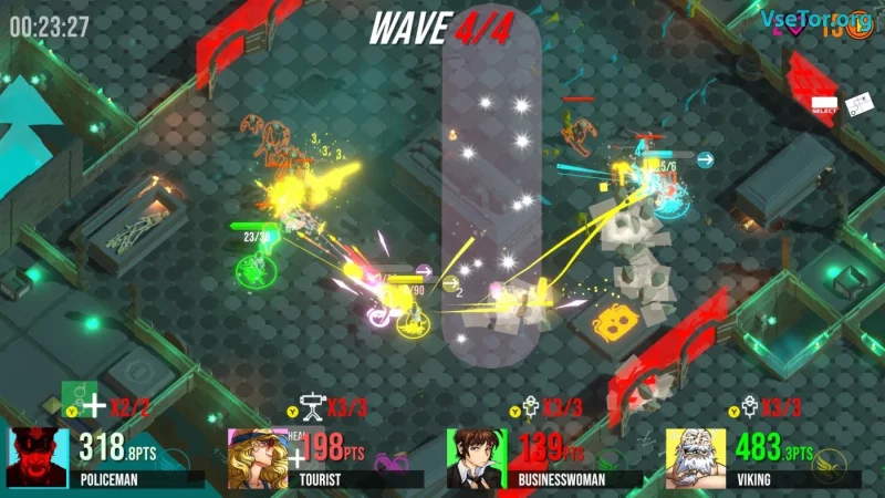 В процессе геймплея важно применять стратегию и действовать слаженно, ведь противники становятся сильнее с каждым уровнем. Помимо интенсивных перестрелок, здесь есть элементы платформера и исследования случайно генерируемых локаций, из-за чего каждое прохождение ощущается свежо и непредсказуемо. Любители одиночного режима смогут проверить свои навыки и выносливость, погрузившись в битвы в одиночку.