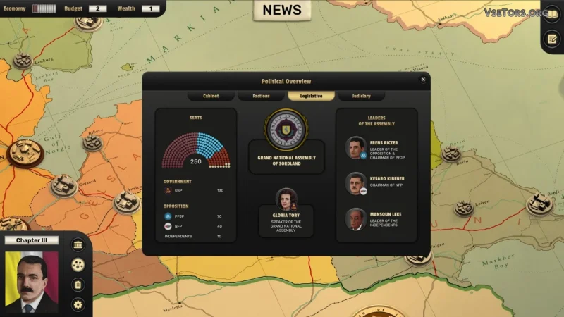 Ваша роль не ограничивается лишь подписанием указов — вам предстоит выстраивать отношения с влиятельными политиками, как внутри страны, так и за ее пределами. Каждый диалог и каждое решение способны кардинально изменять политическую карту Сордленда. Будьте готовы заключать союзы, сражаться с оппозицией, а порой идти на компромиссы — порой даже сомнительные.