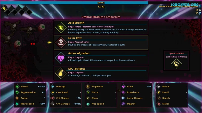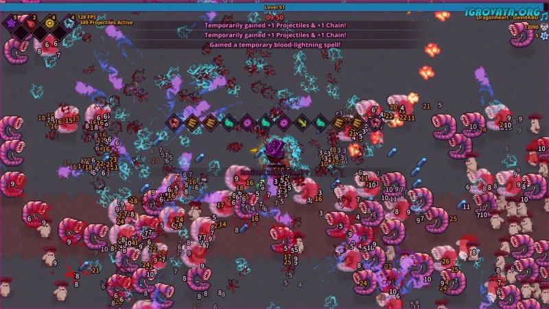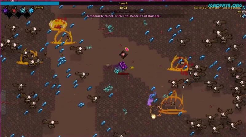 С каждым уничтоженным демоном ваши силы только растут, а поле битвы превращается в настоящий фейерверк из магических атак. Ваше путешествие пройдет через множество разнообразных биомов, где вас ждут ограниченные по времени миссии. Вызов заключается в том, чтобы продержаться 13, 20 или 30 минут, заполняя шкалу опыта и выбирая улучшения из предложенных опций. Так вы сможете открыть новые навыки или усилить уже имеющиеся, словно кузнец, подправляющий оружие перед решающей битвой.