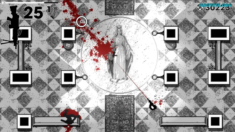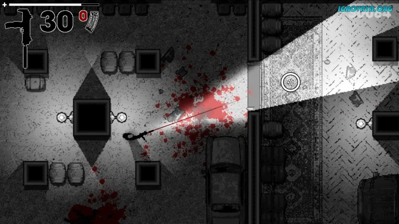 Геймплей напоминает культовую Hotline Miami: игроки оказываются на локациях с множеством комнат, заполненных противниками. Здесь важно тщательно планировать каждый шаг, ведь вызов подкрепления по шуму — дело времени. Используйте огнестрельное оружие и рукопашный бой, следите за боезапасом и вооружайтесь от павших врагов. Механика уворотов и замедления времени помогает выйти из самых безвыходных ситуаций, создавая напряжённые и стратегические сражения.