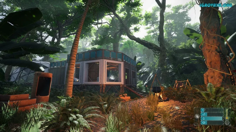 - Пошаговое развитие лагеря от примитивного укрытия до современного дома;