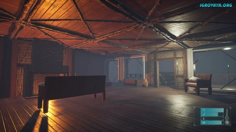 - Управление жизненно важными показателями героя: голод, здоровье и спокойствие;