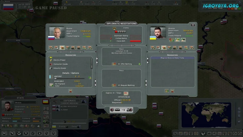 Supreme Ruler 2030 — это уникальная стратегия в реальном времени, сочетающая элементы военного, политического и экономического симулятора. В игре вы выбираете одну из реально существующих стран и стремитесь стать верховным правителем, способным влиять на судьбу всего мира. Чтобы добиться успеха, придется балансировать между дипломатией, военными действиями и внутренним развитием страны.