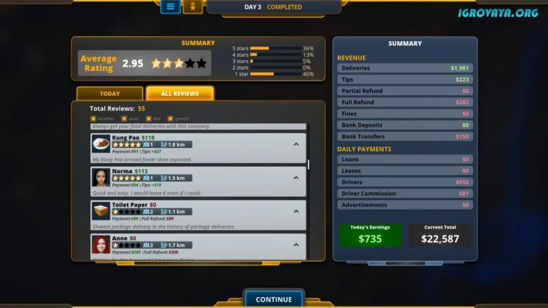 Delivery INC предлагает уникальный опыт управления транспортной компанией в режиме реального времени. Здесь каждый игрок превращается в многофункционального менеджера, которому предстоит не только выстраивать оптимальные маршруты, но и подбирать водителей, обновлять автопарк и справляться с неожиданными проблемами. Задача — доставить важные грузы как можно быстрее, сохранив при этом высокий рейтинг компании.
