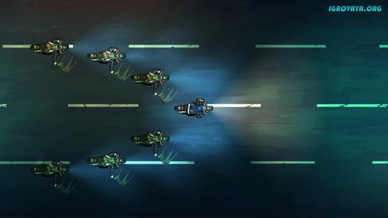 - Неоновая атмосфера, усиленная динамичной музыкой;