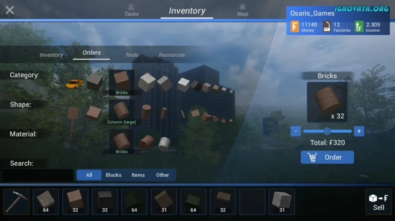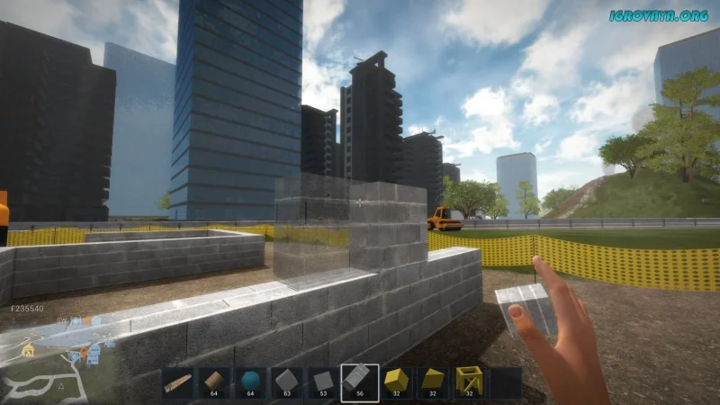 Путешествуйте по созданным дорогам на автомобилях и выбирайте лучшие места для возведения домов, заводов и целых городов. Для упрощения и ускорения рабочих процессов доступны краны и бетономешалки — незаменимые помощники в строительстве. Также важна ваша фантазия: разнообразие форм и материалов блоков позволит воплотить самые смелые архитектурные идеи.