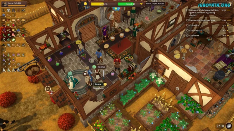 Вы будете не просто продавать товары – вы создадите бизнес мечты, подбирая лучшие позиции для ассортимента, выполняя заказы и привлекая всё больше довольных покупателей. Средневековый магазин в Winkeltje – это не только торговля, но и строительство. Со временем можно перестроить или полностью заново возвести свой магазин, выбрав из множества вариантов интерьера: напольное покрытие, стены, мебель, украшения и даже цветы.