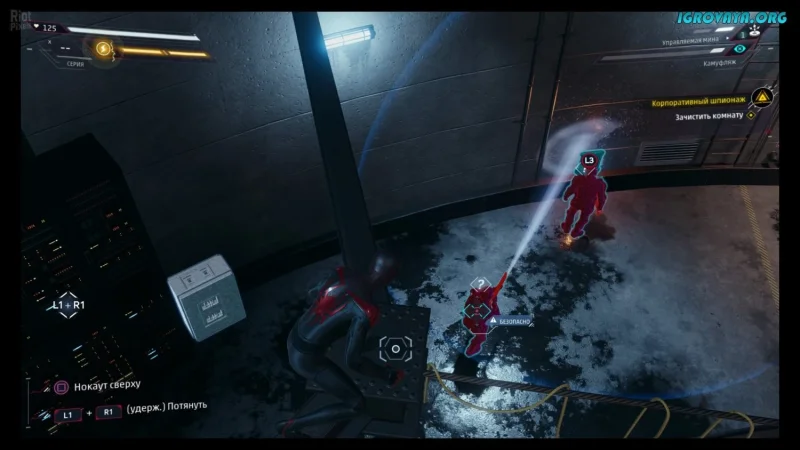 Майлз — это не копия своего предшественника, у него уникальные способности и собственный стиль. Он мастерски летает на паутине, но его фирменный приём — электрические разряды “Веном-удар”, мгновенно обезоруживающие целую толпу. Добавьте к этому невидимость, которая позволяет проходить мимо охраны незаметно, и получим действительно современные боевые приёмы. Бой здесь динамичный и захватывающий: прыжки, атаки с воздуха, паутина, а ещё голографические ловушки и паучьи мины делают каждую схватку особенной.