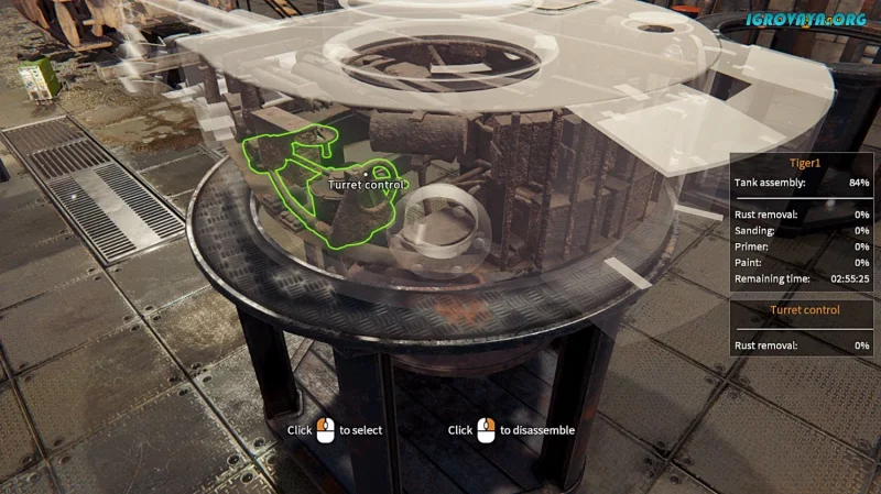 Очистка корпуса от ржавчины и снятие мелких деталей задают ритм работе, а поиск и покупка недостающих запчастей превращают процесс в захватывающую головоломку. Сборка требует сосредоточенности и точности: танк должен не просто выглядеть, а реально работать.