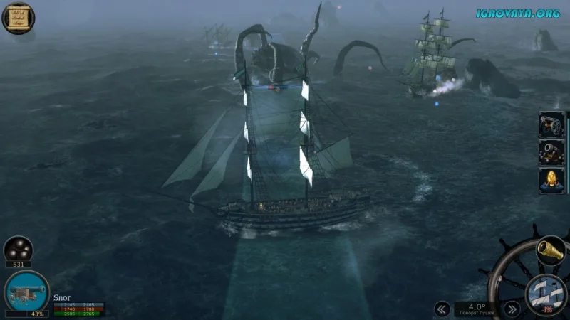 Одним из главных достоинств игры является детально проработанная игровая вселенная, наполненная множеством островов, портов и континентов. Здесь вас ждут не только бушующее море и разнообразные типы судов, но и опасные морские монстры, способные перевернуть ход любого сражения.