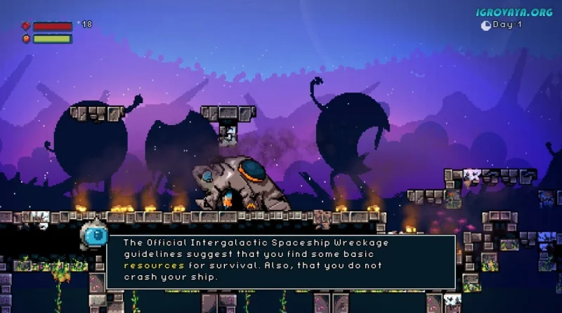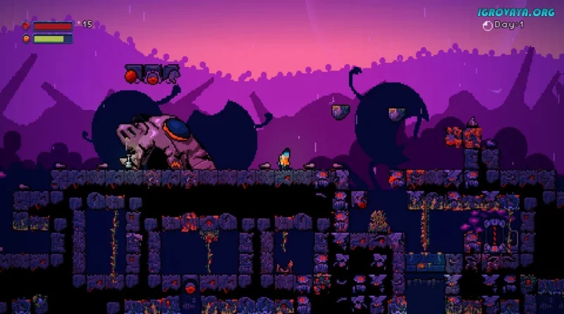 - Интенсивное выживание с необходимостью искать ресурсы и создавать предметы;