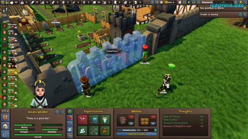Колонисты прибывают без ресурсов, и вам предстоит продумывать каждый шаг: от поиска материалов до организации производства. Вы удачно обеспечите жильём и пропитанием — как будто пройдёте первый уровень испытаний. Но впереди ждут новые вызовы: желания жителей нельзя игнорировать, ведь их настроение напрямую влияет на общую атмосферу поселения. Недовольство может перерасти в депрессию, а затем — и в серьезные конфликты, вплоть до ссор и драк.