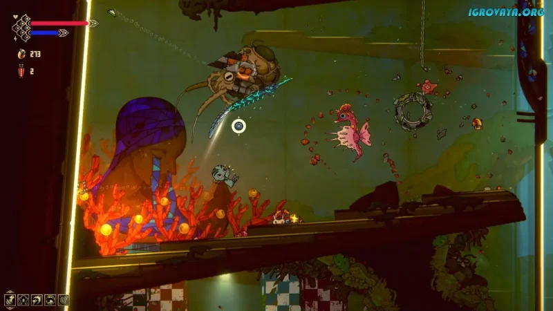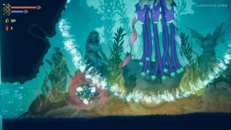 - Разнообразные подводные локации с красивыми пейзажами и опасными врагами;