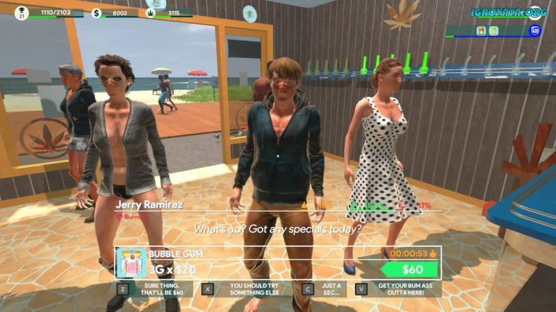 Weed Shop 3 — это не просто симулятор торговли, а целая жизнь с её взлетами, падениями и юмором. Игра заставит вас погрузиться в атмосферу курортного побережья, где каждый новый день приносит и вызовы, и удовольствия. Смельчакам тут точно не будет скучно!