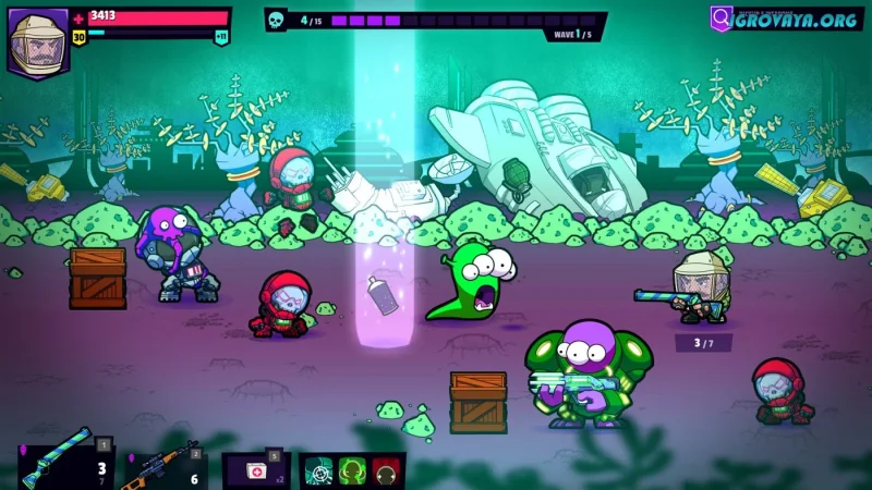 Собирайте ресурсы в миссиях и возвращайтесь на базу, где можно создать мощное оружие или редкие артефакты с особыми способностями. Прокачивайтесь, экспериментируйте и сражайтесь с удовольствием.