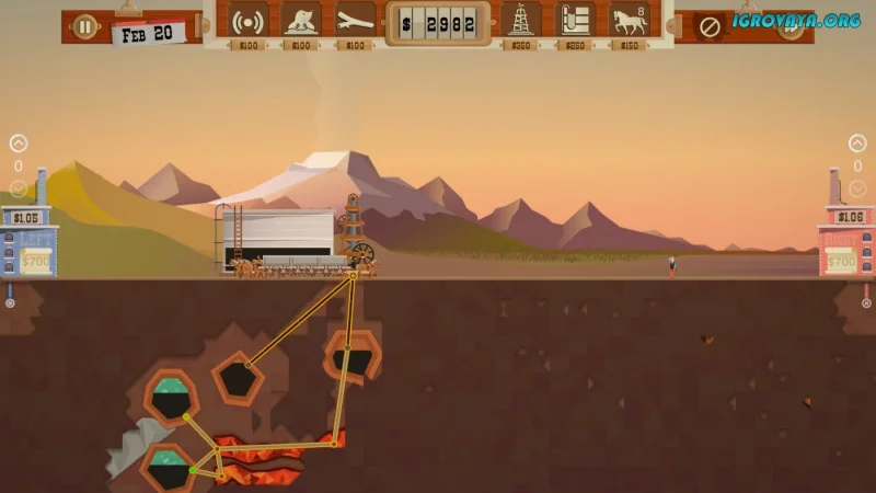 Сначала у вас нет ни фабрики, ни буровой компании — лишь аренда небольшого участка земли и одна нефтяная вышка. Но это только начало! Постепенно открывайте новые месторождения, умело распоряжайтесь ресурсами и следите за колебаниями рынка. Цены на нефть постоянно меняются, поэтому продать продукт стоит в самый выгодный момент, чтобы увеличить капитал и расширить своё предприятие. Не забывайте, что успех зависит от вашей стратегии: покупка акций города, аренда ещё большего числа территорий и грамотное размещение вышек в самых перспективных зонах.