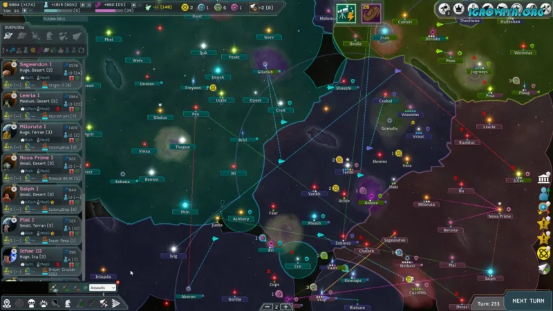 Сюжет здесь не диктует сценарий, зато предоставляет свободу действий: развивайте свою расу, осваивайте колонии, стройте мощный флот космических кораблей и управляйте ресурсами. На первый взгляд всё просто, но на деле каждое решение требует тщательного планирования и учета множества факторов.