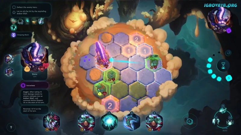 Сражения проходят пошагово на карте из шестиугольных клеток. Управляйте не только перемещением героев, но и направлением их взгляда, ведь это влияет на исход боя. Ошибка в положении приведет к потере инициативы и даст противнику шанс ответить первым. Используйте карты, чтобы вызывать на помощь духов с уникальными способностями — они станут вашим ключом к победе.