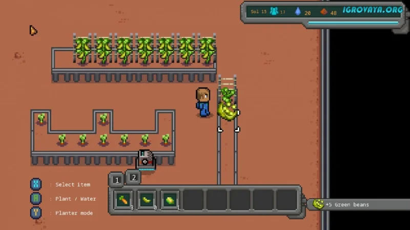 Игровой процесс объединяет элементы фермерского симулятора и градостроительной стратегии. В дневное время вы добываете ресурсы с помощью экстрактора, превращая марсианскую почву в металл и стекло, а вечерами занимаетесь теплицами или участвуете в мини-играх. Особенно заинтересует кулинарный режим — здесь за минуту нужно успеть приготовить суши для толпы колонистов, управляя сковородой лишь одной кнопкой.