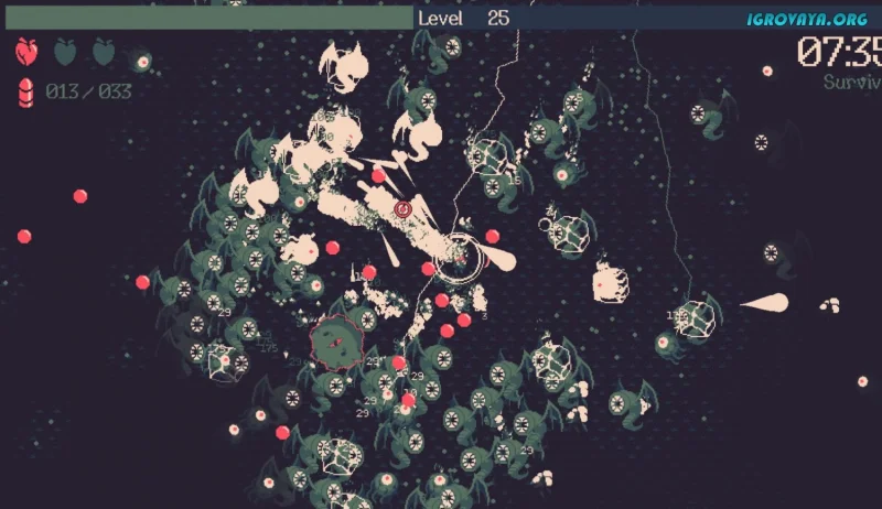 Суть игры проста и одновременно напряжённа: вы должны продержаться ровно 20 минут, отражая бесконечные волны противников. С самого начала соперники не из легких, и каждая новая волна приносит новый тип врагов с особенными атаками. К середине битвы экран превращается в калейдоскоп из взрывов, выстрелов и магических эффектов, где легко потеряться среди хаоса.