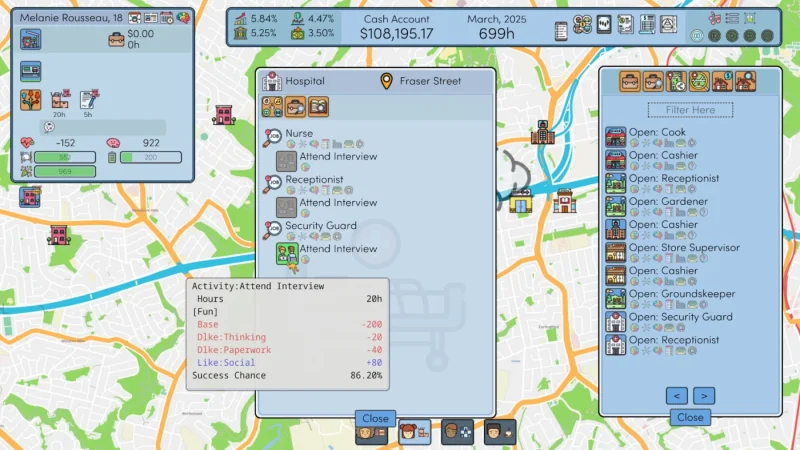Забудьте о шаблонах — у каждого героя свои странности: один фанатит от соцсетей, другой не выносит даже взгляда на мыло. Эти мелочи резко меняют геймплей, делая каждую партию уникальной. Тут важно следить за трендами экономики — ведь своевременная покупка акций может превратить вас в магната, а неудачный кредит — в героя анекдота про банкротство. Автоматизация рутины не всегда спасает: персонажи могут капризничать, словно дети в магазине игрушек — переедят, недоспят, решат прогулять важную встречу. А если слишком увлечься работой, готовьтесь к новым фобиям вроде панического страха фитнеса. Добавьте к этому реальные карты, авторские модификации и конкурентов, которые влияют на обстановку не хуже политиков на дебатах. Эта игра — не просто симулятор, а тренировочный полигон для будущего топ-менеджера и стратегического гения.
