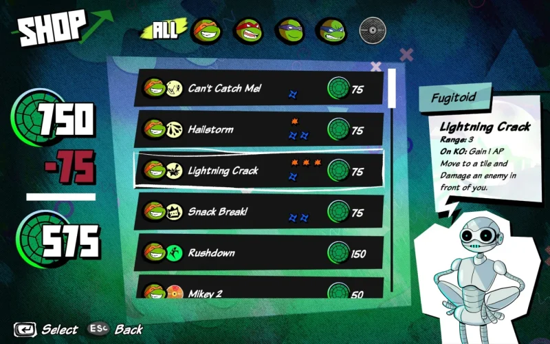В этот раз ситуация серьезная: Шреддер сражён, Сплинтера больше нет, и черепашки вынуждены действовать в одиночку. С каждым заданием герои сталкиваются не только с врагами, но и с внутренними страхами. Лео учится быть настоящим лидером, Донни мучительно переживает свою беспомощность, а Раф ищет выход ярости на несчастных из банды Ноги. Между уровнями короткие диалоги, никаких видеороликов — только атмосфера и эмоции. Разработчики добавили изюминку: если медлить, часть поля разрушается — так что раздумывать приходится быстро, будто пицца на подходе к истечению срока годности. Механика проста: шесть действий на ход, всё интуитивно, но возможностей масса. Сбросить врага с крыши, столкнуть их мусоровозом или накопить сил для разрушительной атаки — всё в игре работает на адреналине. Прокачка открывает новые техники, например, жизнь за счёт атак Рафа. Сложность не вызывает желания выдернуть хвост у крысы — даже финал проходится без истерики, зато приятно наблюдать, как поле очищается одним мощным комбо, словно ты снова сидишь перед стареньким телевизором с джойстиком в руках.