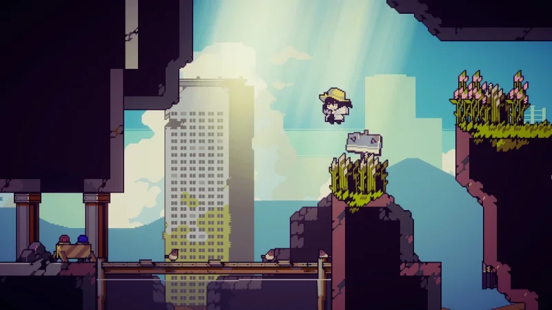 - Постапокалиптическая атмосфера с пиксельной анимацией и яркими визуальными контрастами