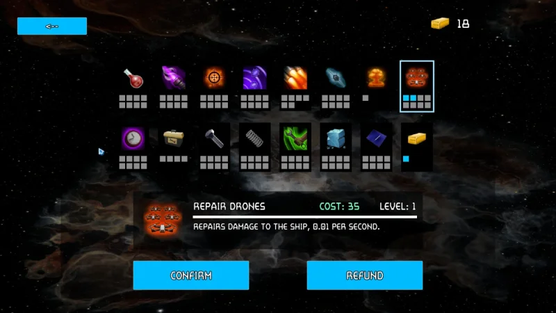 - Гибкая система улучшений и апгрейдов корабля