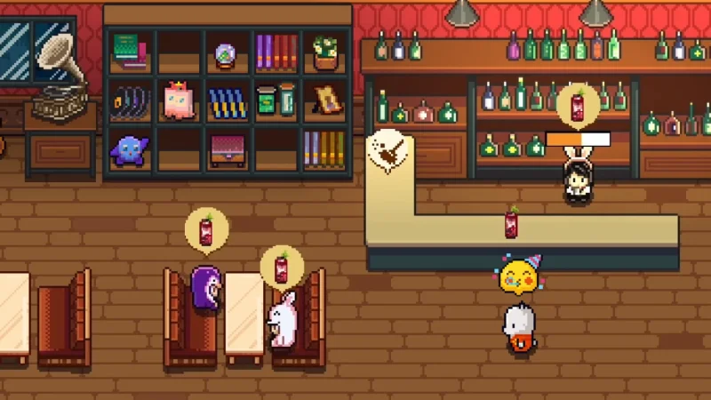В мире Lakeside Bar всегда пахнет свежестью и спокойствием. Этот симулятор бара встречает вас мягким светом пикселей и смешными зверятами, которые спешат отдохнуть после тяжёлого дня. Главный герой — робот, вечно мечтающий ускользнуть на рыбалку, но обязанности бармена не отпускают. Ваша задача проста: закупайте напитки, открывайте двери заведения, следите за тем, чтобы каждый пушистый клиент получил свою кружку пива вовремя. Если устали от суеты — просто закройте бар на перерыв, украшайте его по своему вкусу, меняйте обстановку и любуйтесь закатами через виртуальное окно.