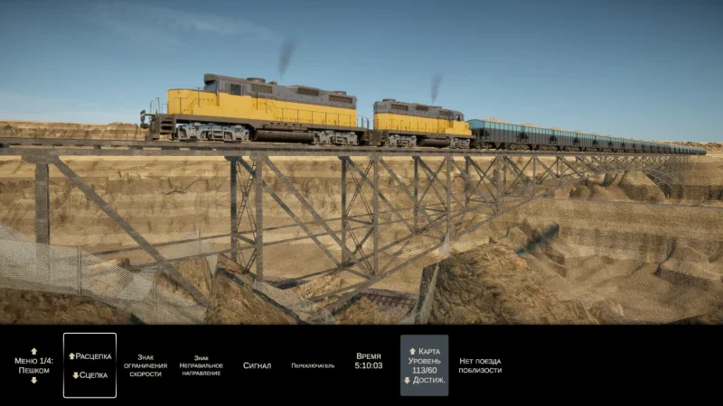 Ландшафт в игре не прощает лени и невнимательности: роете тоннели, насыпаем грунт, возводите мосты из того, что сами накопали. Почва меняет оттенки, акцентируя высоту, и подсказывает, какой склон будет удачным. Если крутить стрелки не вовремя, рискуете оставить поезд ждать у разбитого корыта. Когда начинают ездить поезда искусственного интеллекта, ваша сеть испытывается на прочность, а ошибки мгновенно становятся заметны - вагоны прибавляются, маршрут усложняется, движение становится плотнее. Модернизируйте свой локомотив, увеличивайте скорости, управляйте перегоном, вручную настраивайте стрелки и сигналы. Шесть уникальных карт, от хвойных лесов до беспощадных каньонов, бросают вызов даже самым смелым железнодорожникам. 48 миссий с разными условиями не дадут заскучать, а достижения потребуют не только смекалки, но и терпения. Это не просто симулятор - это школа упорства и внимательности, где каждый метр пути становится вашей маленькой победой.