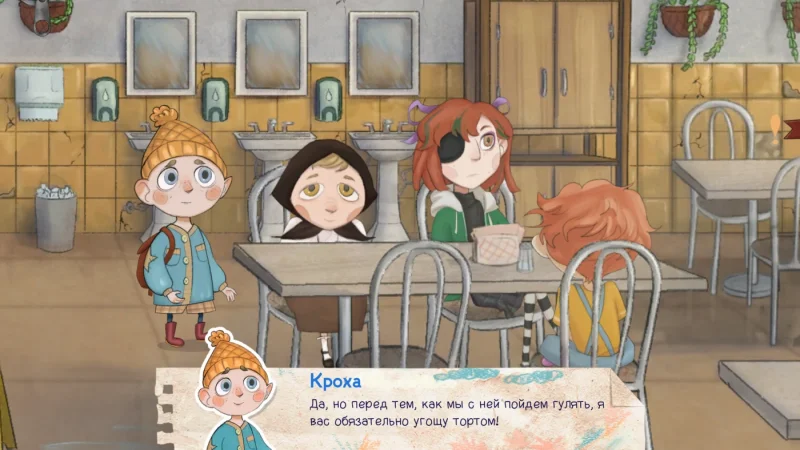 Всё вокруг кажется опаснее, чем на самом деле: лестница выглядит как скала, уличный туалет превращается в крепость от страхов, а обычная банка с мёдом становится испытанием для смельчаков. На каждом шагу игрок сталкивается с головоломками, ловлей крыс, расстановкой чисел и выбором: идти по свету или следовать Тени. Доброта или хитрость? Помочь бездомному щенку, завести друга или спрятаться от всех? Каждый крошечный выбор меняет путь Крохи, словно рябь на воде, и ведёт к разным финалам. Тень идёт бок о бок, помогает и сбивает с пути, порой кажется родной, а иногда пугает больше всего. Это путешествие не только на поиски мамы, но и внутрь себя - каждый страх здесь становится монстром, а с принятием решений появляется возможность взрослеть. Даже если мир кажется слишком большим, у Крохи хватает мужества мечтать, записывать истории и исследовать неизвестность.